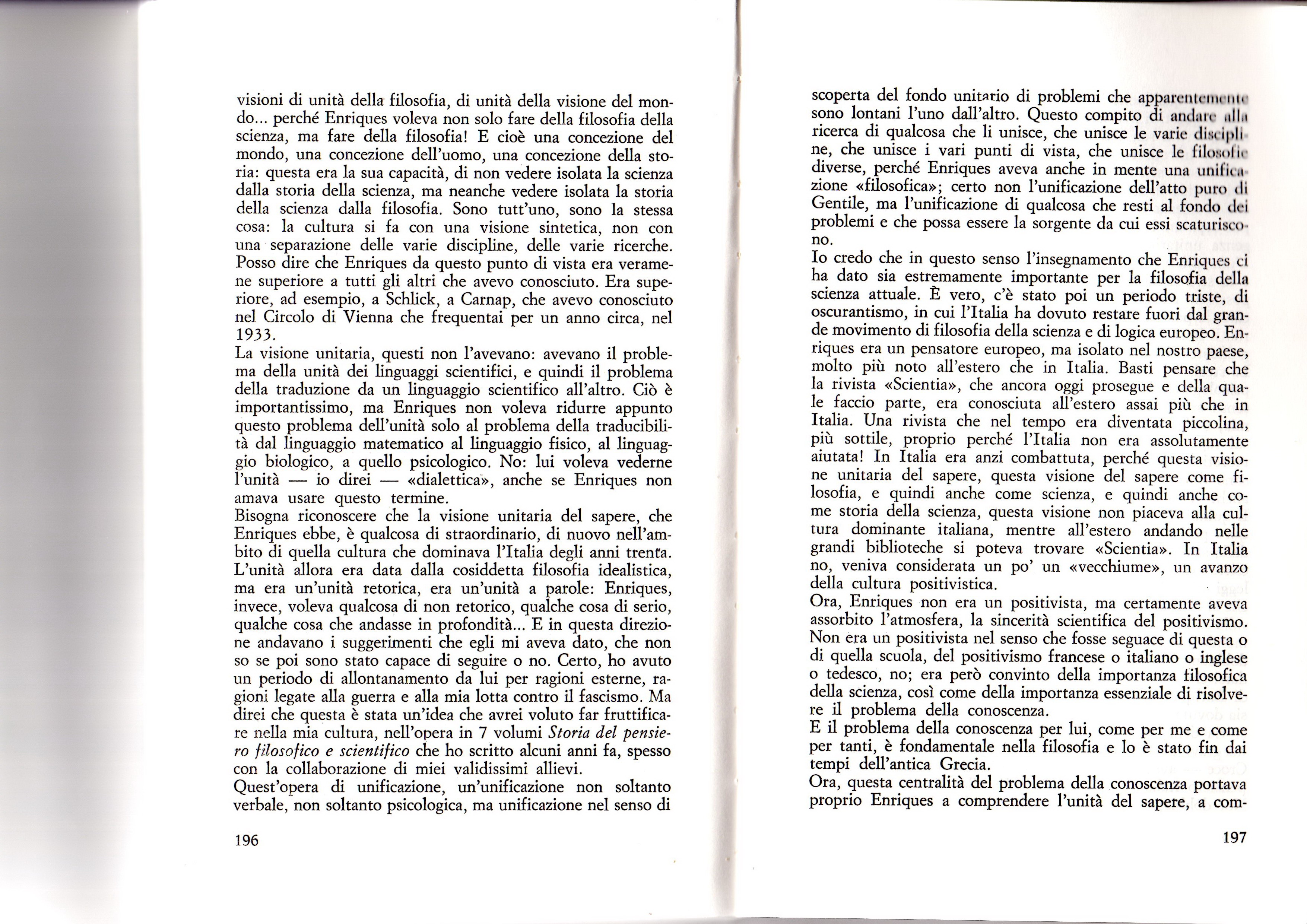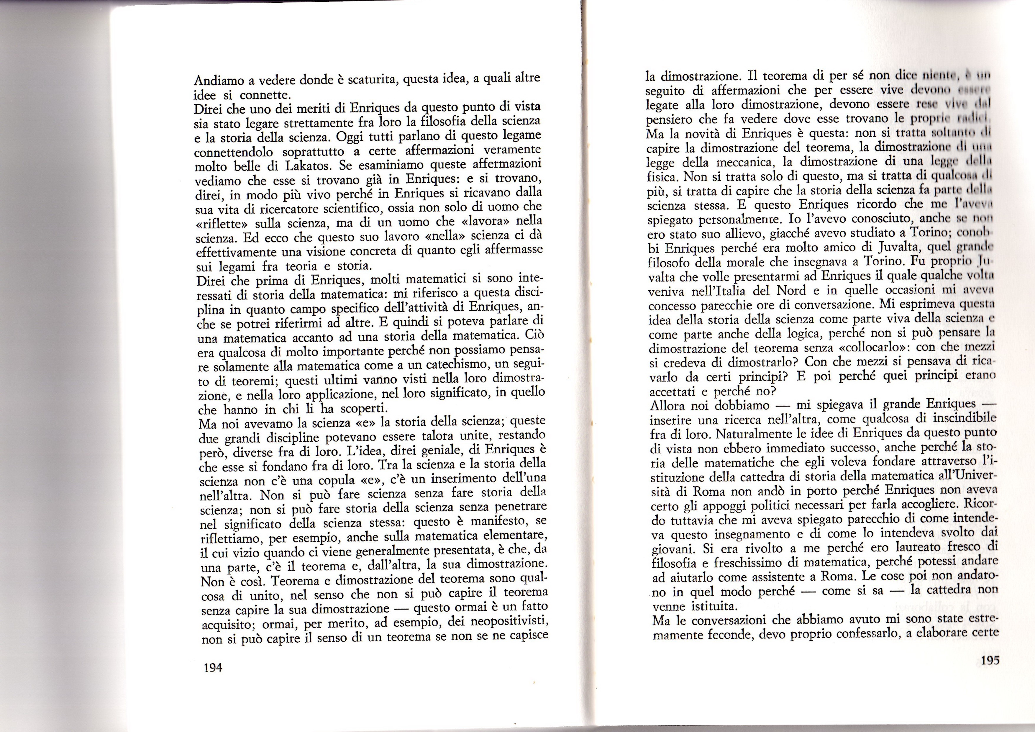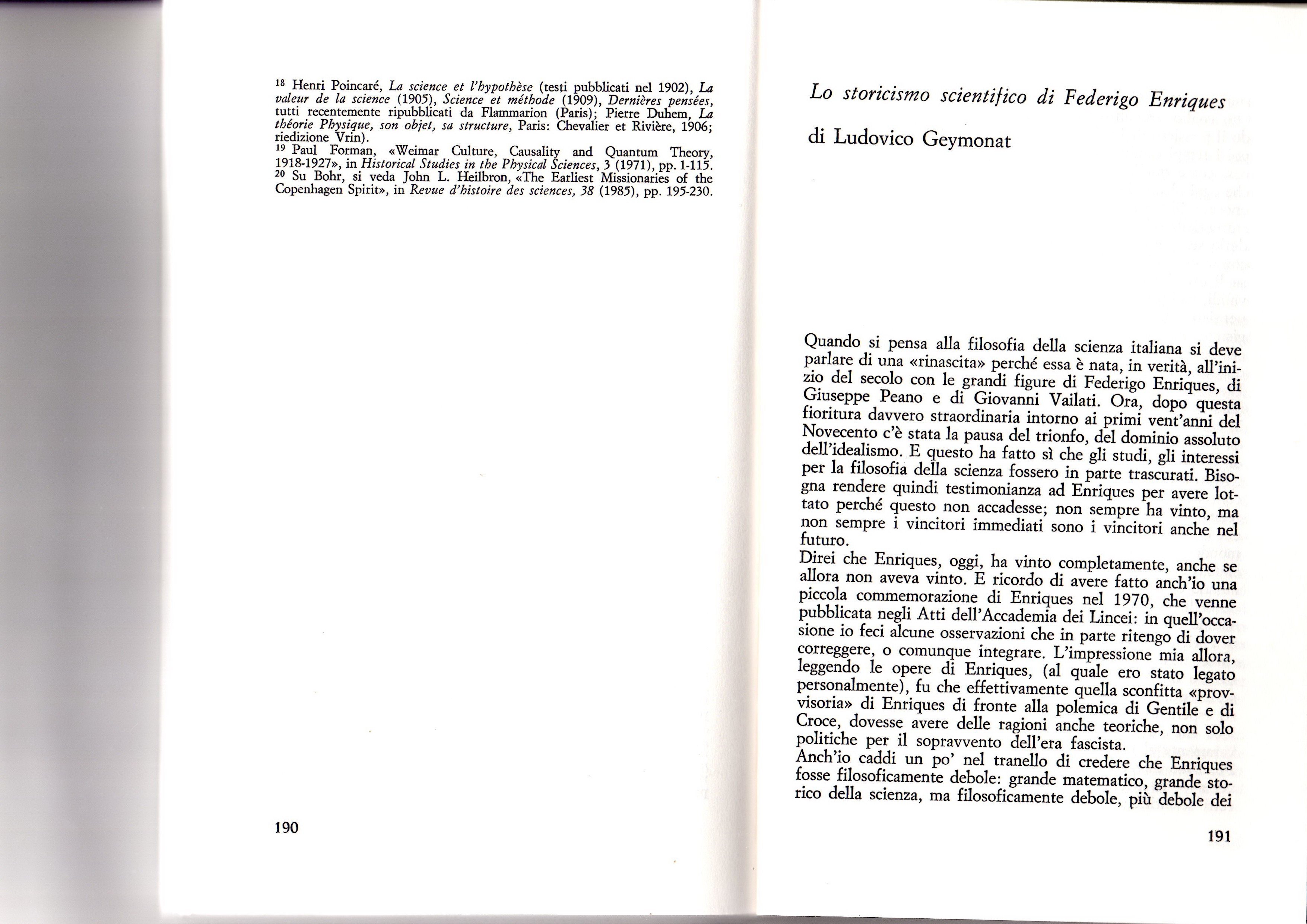 Ludovico Geymonat, “Lo storicismo scientifico di Federigo Enriques”, 1986, in “Federigo Enriques filosofo e scienziato”, a cura di Raffaella Simili, Cappelli 1989, pp. 191-199